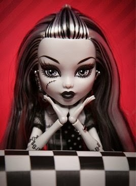 Frankie Stein is Frankenstei's daugher. She is fifteen days old and she behaves like a little girl.She is clumsy, polite, shy, kind, and a good friend to have and be around. Frankie has black and white hair.